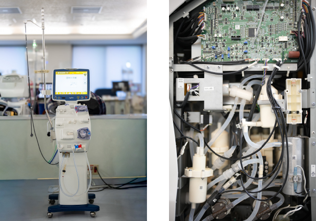 法人全体で多人数用透析液供給装置、A剤溶解装置、B剤溶解装置、逆浸透水精製装置を各6台、透析用患者監視装置271台を有しています。 これらの透析関連機器が日々正常に動作し、安全な透析医療を患者様に提供できるよう、保守管理に努めています。