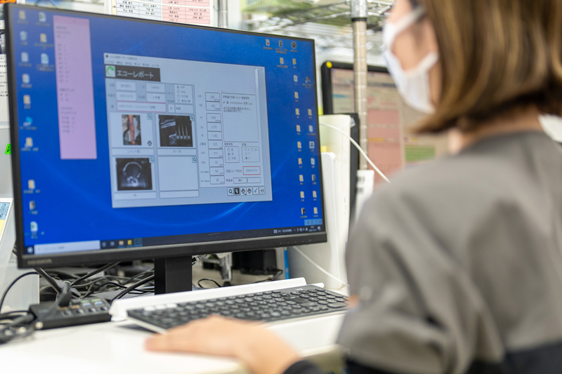 穿刺が困難な患者さんについては、超音波検査装置を用いた穿刺を行い、確実かつ安全に穿刺ができる体制にしています。狭窄・閉塞などでシャント血管に異常が生じた場合は超音波検査装置ガイドのもとVAIVT治療を医師と共に実施、シャント血管が長期に使用できるようサポートしています。また、医師、看護師、臨床工学技士など院内スタッフに対して、バスキュラーアクセスの取り扱いや穿刺技術に関する教育・指導も実施しています。医療チーム全体でスキルの均質化を図り、安全性と質の高い医療体制の維持に努めています。