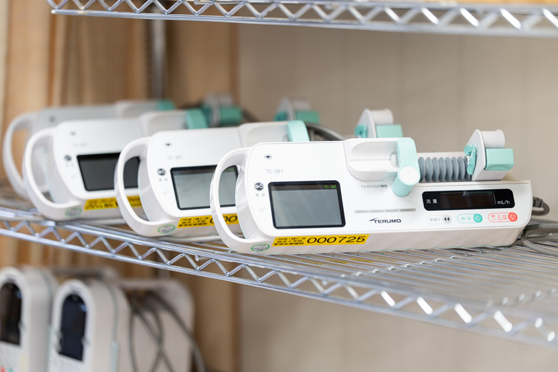 現在の医療の現場では、多種多様なME機器が用いられています。 これらのME機器が正常に動作しなければ、重大な事故につながる恐れがあります。 その為、医療安全の面からも、日々の保守点検で異常がないか確認することは極めて、重要なポイントになります。 輸液ポンプ、シリンジポンプをはじめ、病院内のME機器をシステム管理し、 日々正常に動作するよう保守管理に努めていきます。 また、病院内のME機器が効率よく使用出来るよう、購入から廃棄まで総合的な管理に取り組んでいきます。