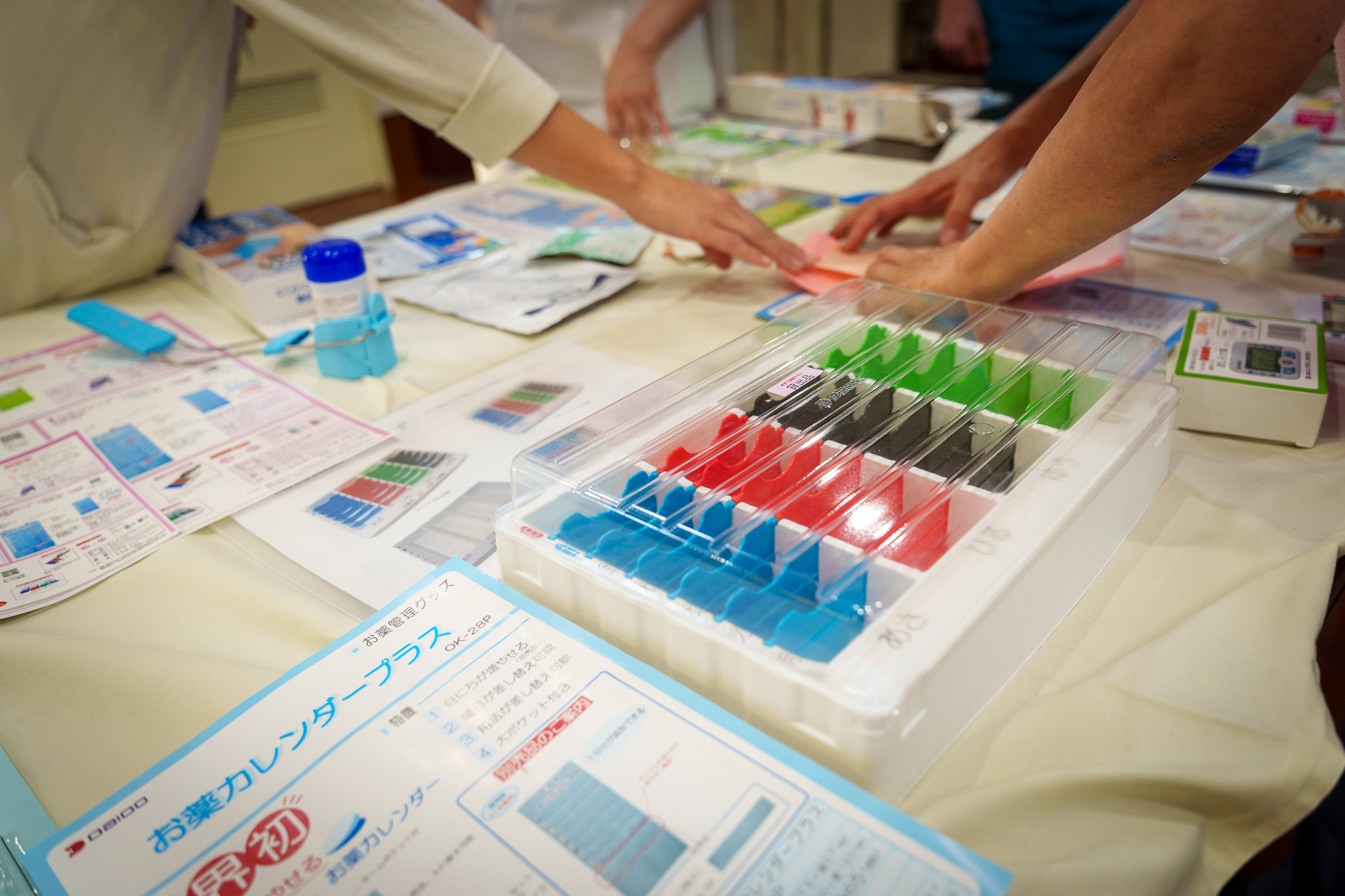 お薬の便利グッズの紹介では皆さんが商品を手に取って触ってみて「この商品はどこで買えるの?」と問い合わせがありました。